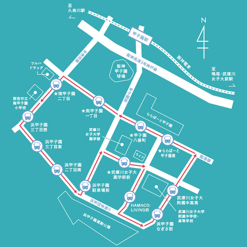 • 運行エリア:甲子園エリア(全長約5.4km・ルート/時刻表は別紙参照)