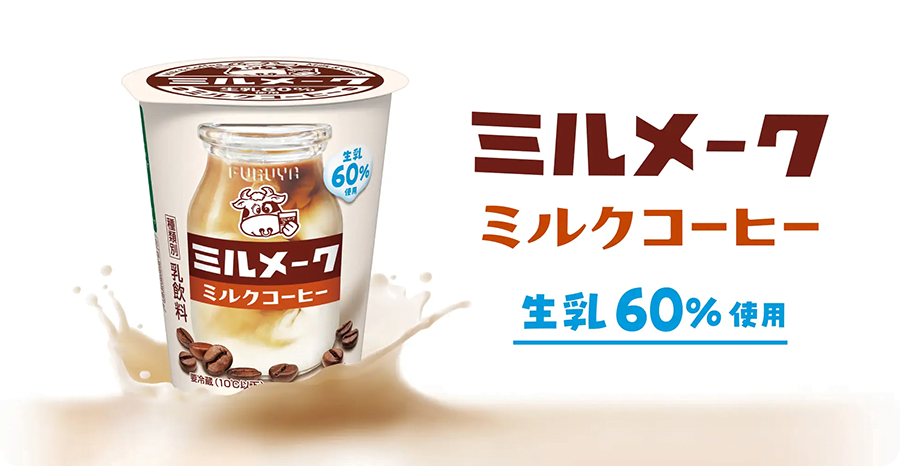 Milmake牛奶咖啡是一款新品,它将自昭和时代以来就深受学生喜爱的Milmake咖啡,与千叶县学生午餐长期选用的古屋乳业牛奶完美融合。Milmake咖啡在社交媒体上引发热议,我们在此基础上进一步提升了其风味,将生牛奶的使用比例从55%提高到60%,使其奶香更加浓郁,让您轻松重温学生午餐的甜蜜滋味。