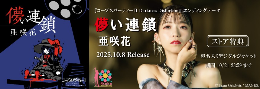 | 初次发售:“Hakanai Rensha” | 发售开始:2025年10月8日(星期三)20:00 Nintendo Switch™/PlayStation®5 游戏《尸体派对II:黑暗扭曲》的片尾曲 价格:255日元(含税) 发行:AniTone Music ▶ AniTone Digital Store 特设页面 期间,10月6日至10月21日期间还将举办活动, 2025 年,从商店购买的顾客将获得一件特殊的“带地址的数字夹克”作为奖励。 |