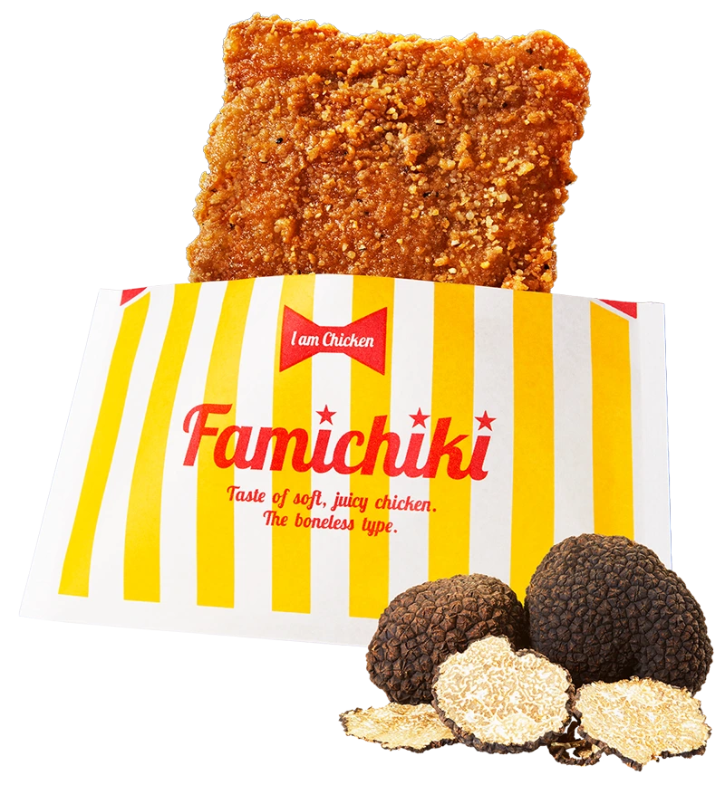 | 【内容】 | 这款 Famichiki 采用意大利黑松露粉制成。浓郁的黑松露香气与鸡肉的鲜美滋味完美融合,带来高级口感。 |